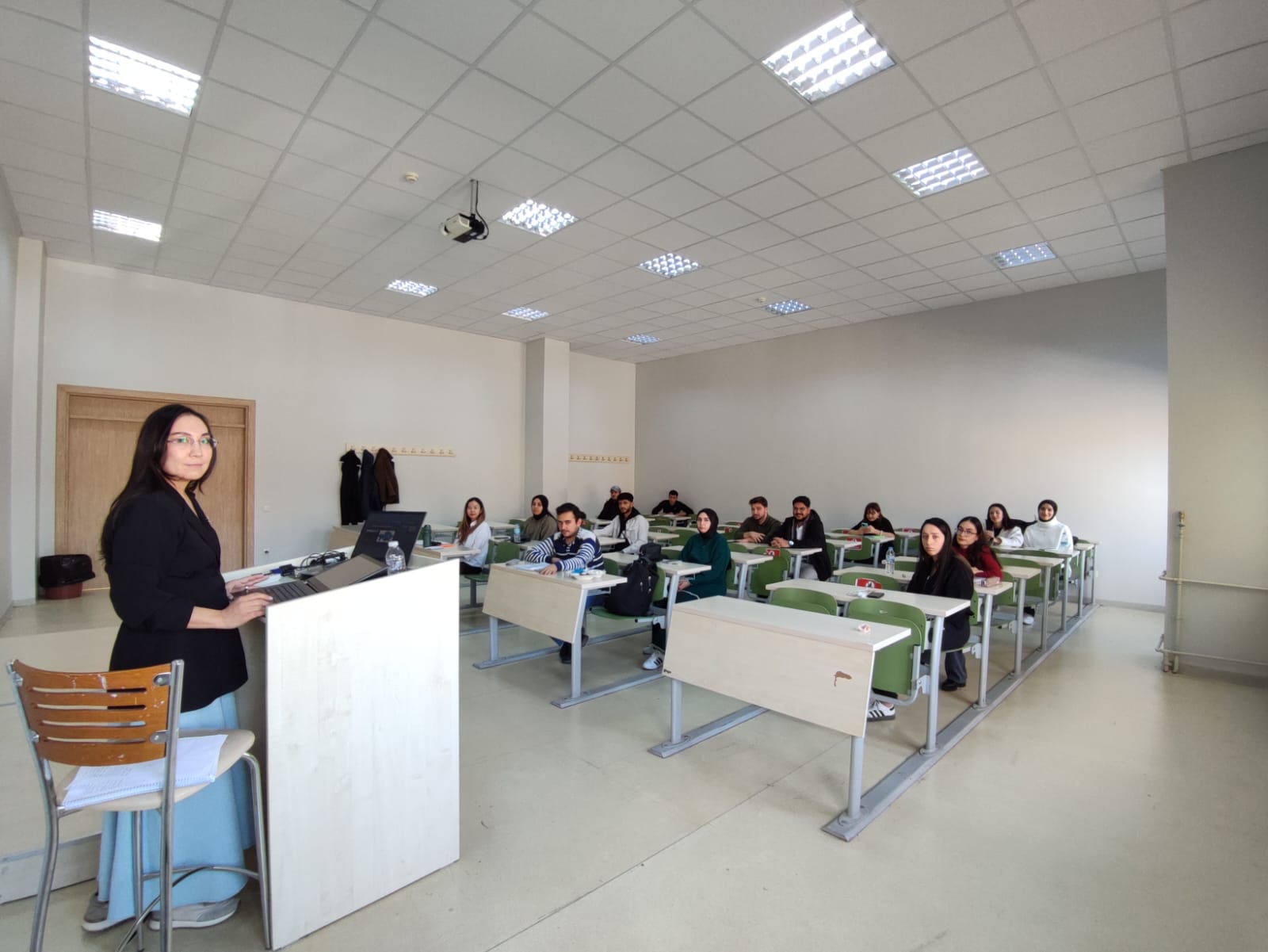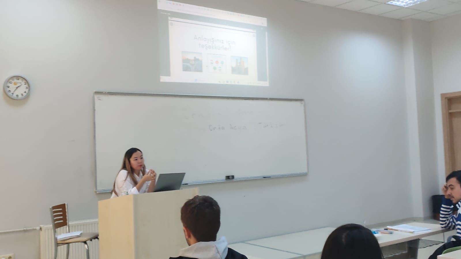 Ziyaret sonrası öğrenciler Siyaset Bilimi ve Kamu Yönetimi Bölümünde lisans öğrencilerimizle buluşarak bilgilendirici bir sunum gerçekleştirdi. Kazakistan Cumhuriyeti Bilim ve Yükseköğretim Bakanlığında uzman olarak görev yapan Aizhan Konysbayeva, Orta Asya kültürünün tarihsel gelişimi, toplumsal yapısı ve ortak Türk kimliği üzerine bilgi aktarırken; Makhambet Utemisov Batı Kazakistan Devlet Üniversitesinde akademisyen olan Aigirim Ümitaliyeva ise Kazakistan’ın dış politikasının öncelikleri, bölgesel yaklaşımı ve Türk Dünyasındaki stratejik rolünü öğrencilerimizle paylaştı.